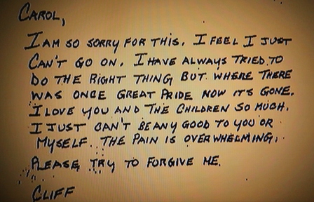 A screen shot of Enron executive Cliff Baxter's suicide note to his wife, as