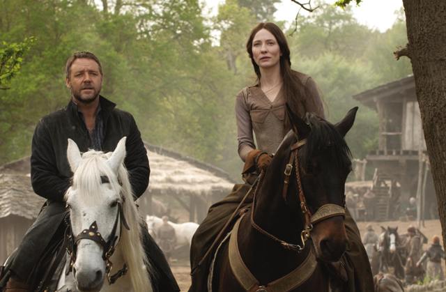Russell Crowe as Sir Robert "Robin" Loxley and Cate Blanchett as Lady Marion
